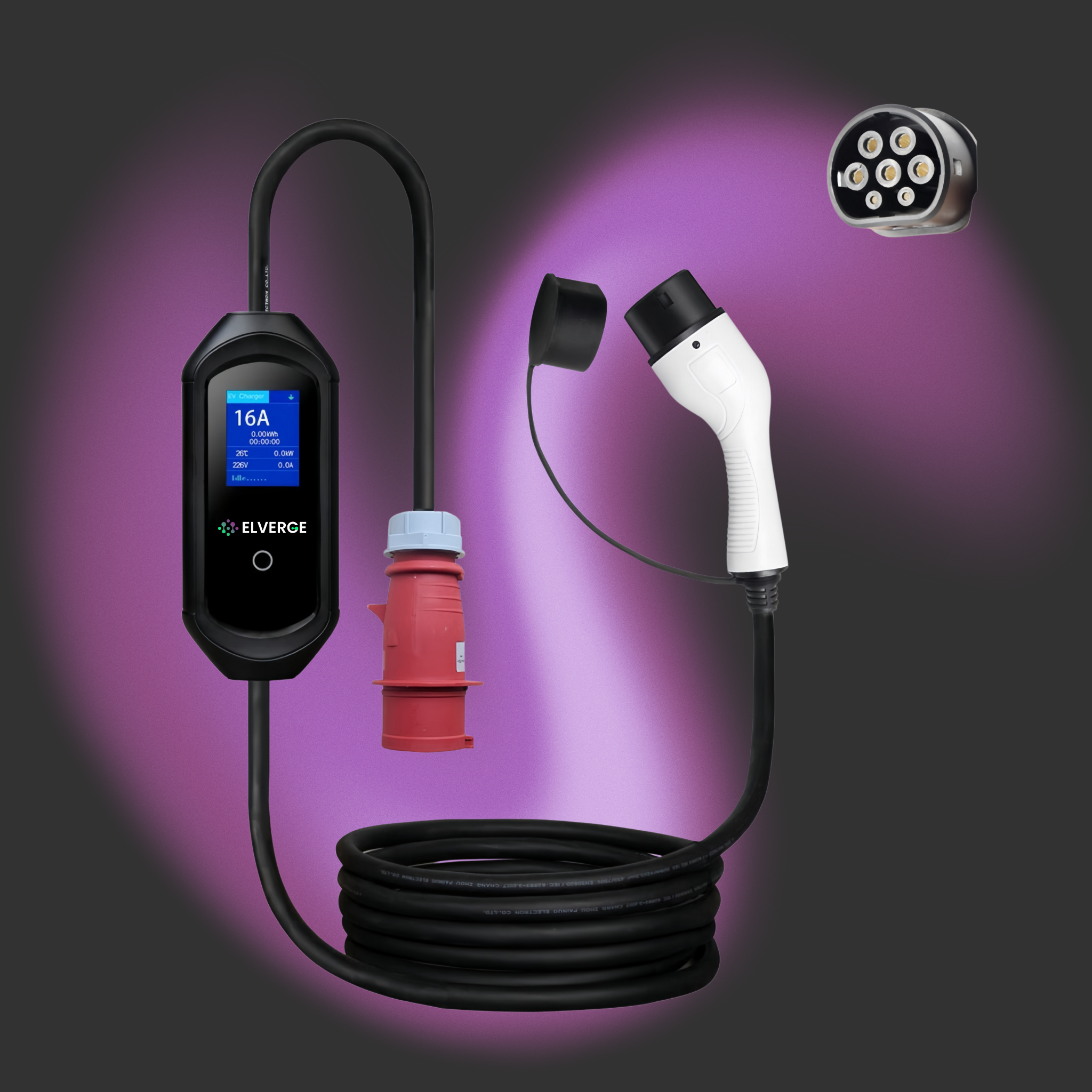 Przenośna ładowarka ELVERGE 11kW 16A Type 2 do ładowania samochodów EV oraz PHEV